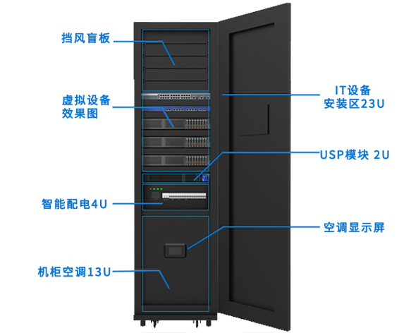 空調(diào)(制冷量2500W)、UPS電源(3KVA)、配電、前后玻璃門(可選鈑金門)
